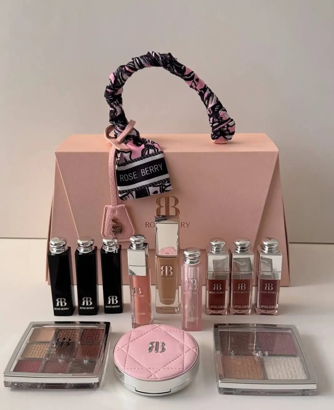 3pcs Lipsticks, 3pcs Lipgloss, Eyeshadow palette, Highlight palette, Powder, Concealer, Blush, Lip blam